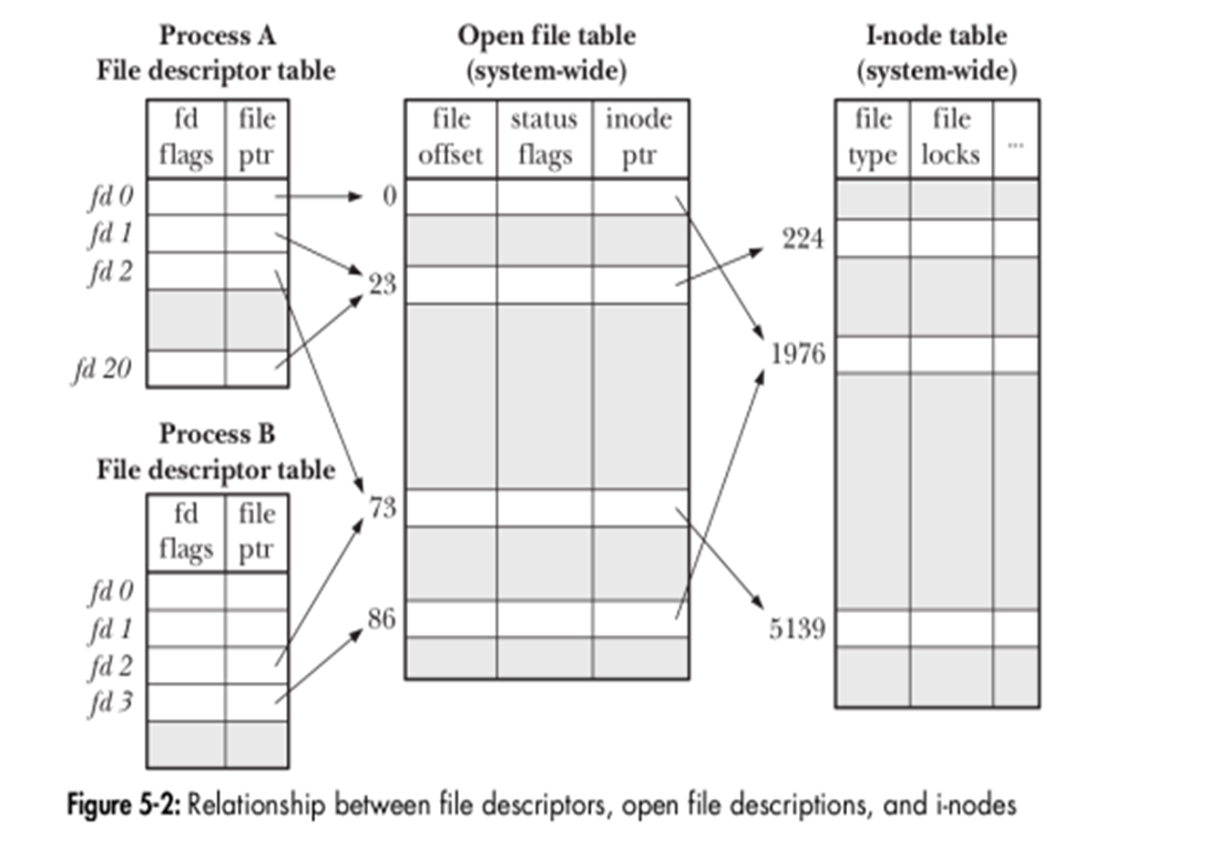 - Khi một file được mở nhiều lần, có thể bởi nhiều tiến trình khác nhau, mỗi tiến trình sẽ có FD riêng nhưng chúng có thể tham chiếu đến cùng một mục trong Open File Table.