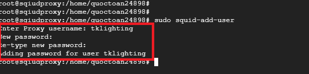 sudo squid-add-user Nhập tài khoản và mật khẩu