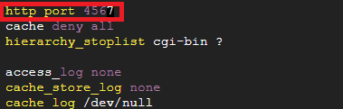 vim /etc/squid/squid.conf Bấm phím `INS` trên bàn phím để vào chế độ chỉnh sửa. Sửa http_ port thành port monng muốn. Sau đó ấn `Ctrl+C` trên bàn phím để thoát chế độ chỉnh sửa. Tiếp tục ấn `:wq` để lưu và thoát trình soạn thảo.